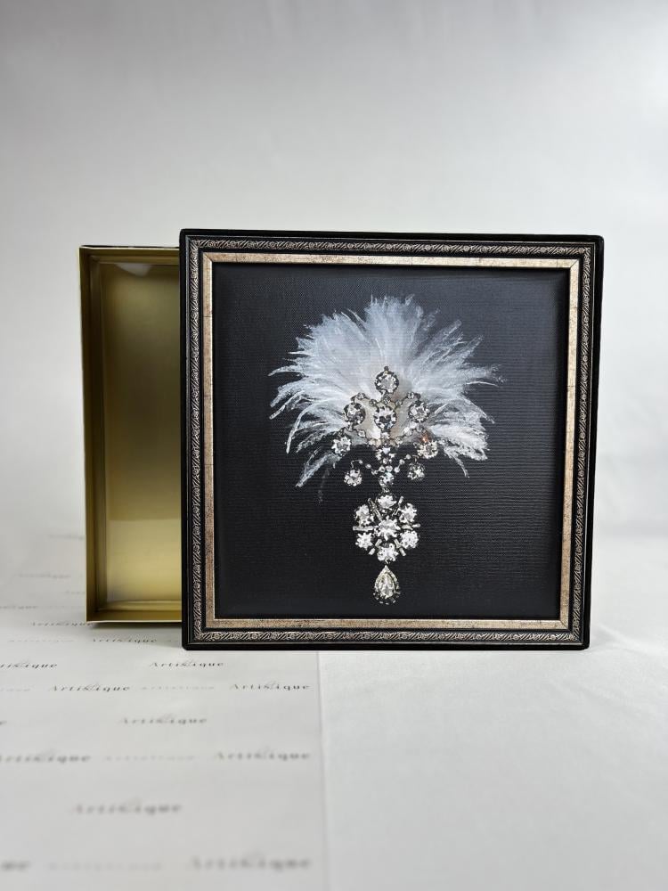- المواد: اطار فاخر، قماش كانفاس، وأكريليك شفاف