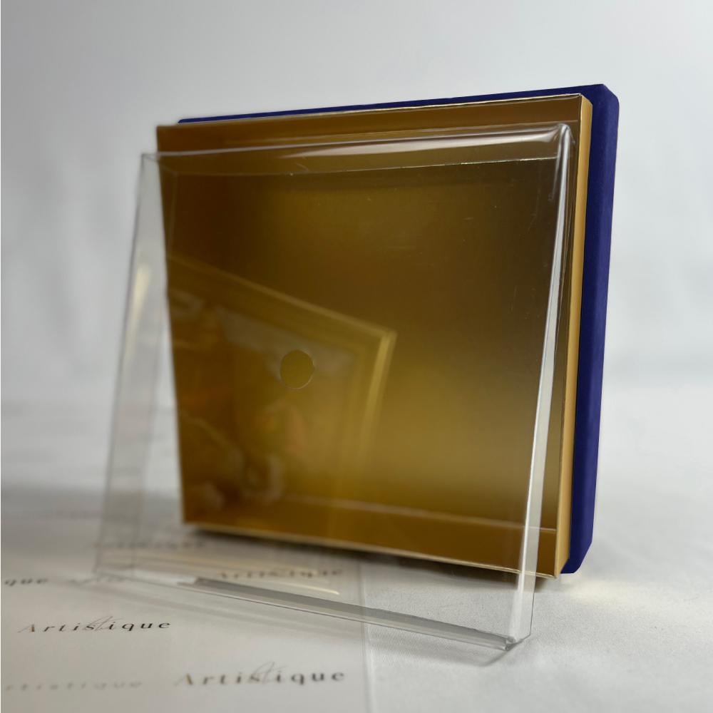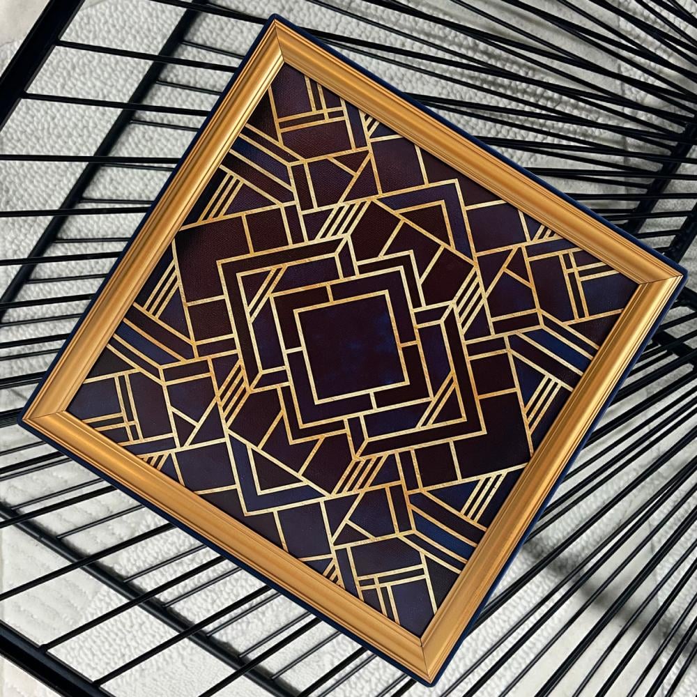 علبة فاخرة - تصميم "رصين" تمزج بين الأناقة والفخامة، مزينة بلوحة فنية مطبوعة على قماش كانفاس، مما يجعلها إضافة رائعة لأي مساحة. تأتي مع قاعدة أكريليك شفافة لسهولة تنظيم الهدايا أو الضيافة.